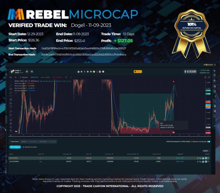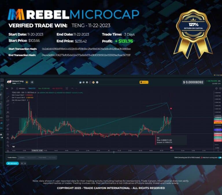 These are not isolated wins – these are the kinds of results our students are achieving consistently. Whether it’s a 126% profit on HOPPY/WETH or a 90% gain on DOE/SOL in just a few days, Titan’s Edge is all about leveraging microcap opportunities and making real, life-changing profits and we have dozens more below…
