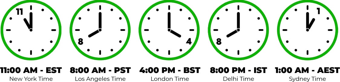 Want to know what time the Masterclass is in your region? Check below or check the worldwide time calculator here.